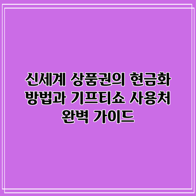 신세계 상품권의 현금화 방법과 기프티쇼 사용처를 알아보았어요. 기프티콘 상품권은 유효 기간을 고려하여 신속히 교환하는 것이 중요하고, 모바일 상품권은 더 쉽게 현금으로 환전할 수 있어요.