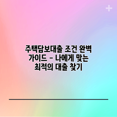 주택담보대출은 내 집 마련의 꿈을 현실로 바꾸는 중요한 금융 상품이에요. 하지만 어떤 조건으로 대출을 받아야 할지 고민이 많으시죠? 이제 이 글을 통해 주택담보대출 조건을 마스터하고 나에게 꼭 맞는 최적의 대출을 찾아보세요!